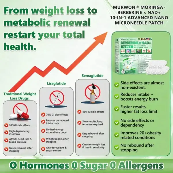ย ๐๐ฎ๐ซ๐๐๐ยฎ๐ด๐๐๐๐๐๐ฎ ยท ๐๐ฒ๐ฟ๐ฏ๐ฒ๐ฟ๐๐ฃ๐ ร ๐๐ผ๐+ ๐๐-๐ข๐ง-๐ ๐๐ฑ๐๐ฎ๐ป๐ฐ๐๐ ๐๐๐ฃ๐ค ๐๐๐๐ง๐ค๐ฃ๐๐๐๐ฅ๐ ๐๐๐ญ๐๐ breaking away from the burden of traditional injectable or oral weight-loss products, this advanced nano microneedle transdermal delivery system gently and steadily releases active ingredients for up to 8 hours. Core ingredients Moringa and ๐๐๐ซ๐ฏ๐ฒ๐ซ๐ข๐ง๐ work synergistically to support appetite management and lipid metabolism, making fat loss feel more natural and effortlessโwithout extreme dieting or physical strain. At the same time, NADโบ supports cellular energy levels and skin firmness, helping maintain a healthy, well-toned appearance during body-weight changes. The overall formula is gentle and stable, offering a more comfortable experience for those seeking an effective, non-irritating, and non-injectable approach to weight management.