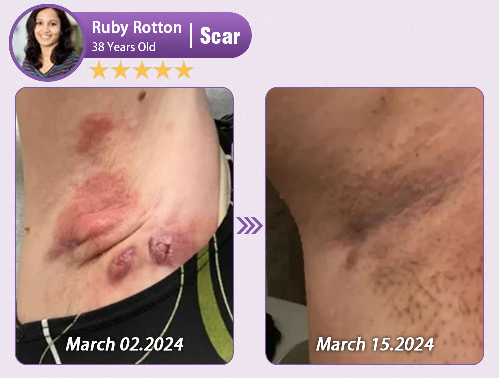 Dealing with hidradenitis suppurativa has been such a painful journey, especially those discolored lumps that made me uncomfortable every time I saw them. I tried everything—medications, oils, sprays—but nothing really worked. I was preparing for a long-term treatment until I visited my friend who’s a cosmetic doctor. She told me about this product, and after just one week, the dark spots faded, my skin felt much smoother, and the thickening stopped. Now, it’s almost completely gone!