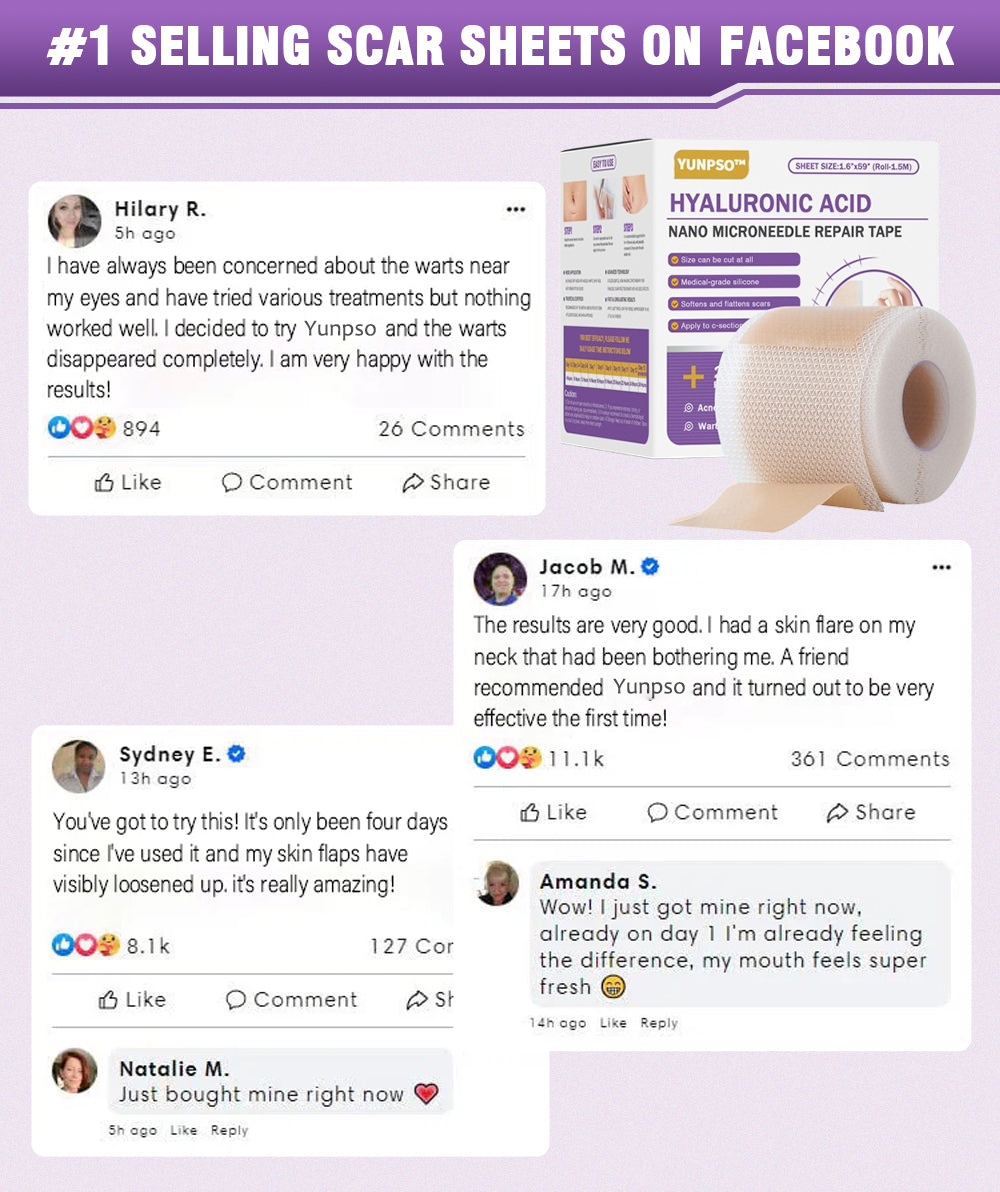 I had a severe wound on my lower leg that left behind a thick, dark scar. It wasn’t very big, but every time I wore shorts, it made me feel self-conscious. While searching online for ways to reduce scarring, I came across |YUNPSO™ Hyaluronic Acid Nano Microneedle Repair Tape and decided to give it a try—though I wasn’t expecting much. To my surprise, I quickly noticed my skin becoming smoother and more refined, and the texture of the scar began to improve… Now, it’s barely noticeable. |YUNPSO™ really works!